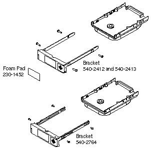 SSA Bracket 540-2764* SSA Model 100 Series SPARCserver 1000 Disk Card * Bracket 540-2764 replaced Seagate bracket 540-2412 and Conner bracket 540-2413 |