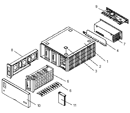 Chassis Assembly without Covers, Medium Grey Chassis Assembly with Covers, Medium Grey Top and Bottom Cover, Medium Grey Side Cover, Medium Grey Cover Plug, Medium Grey Foot Backplane Drive Tray FRU Assembly, Medium Grey Drive Tray Backplane Chassis Subassembly Chassis Power Supply FRU Assembly, Medium Grey 440 Watt Power Supply Fan Tray FRU Assembly, Medium Grey 120 x 38 mm Fan, 100CFM |