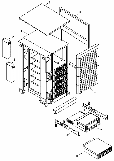RSM Array 2000/StorEdge A3000 Assembly Chassis with Backplane FRU Power Supply Chassis Assembly Power Supply Power Supply Fan Assembly Differential SCSI Array Controller without Memory Differential SCSI Array Controller with Memory Battery Assembly Differential SCSI Array Controller Fan AssemblyMounting Rail Set |
