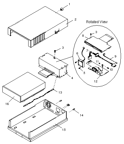 Tape Enclosure FRU without Tape Drive Tape Enclosure without Tape Drive Lockbox Tape Drive Cover Assembly M3 x 6 mm Screw Tape Drive Power Supply Assembly M3 x 25 mm Screw (obsolete) M3 x 25 mm Pan-Head Screw Fan Tape Drive DC Power Cable Tape Drive SCSI Interface Card Address Select Cable Address Select Cable M4 x 10 mm Screw M4 Nut 30 Watt Power Supply LED Cable #4-40M/2-56F Jackscrew Base Assembly |